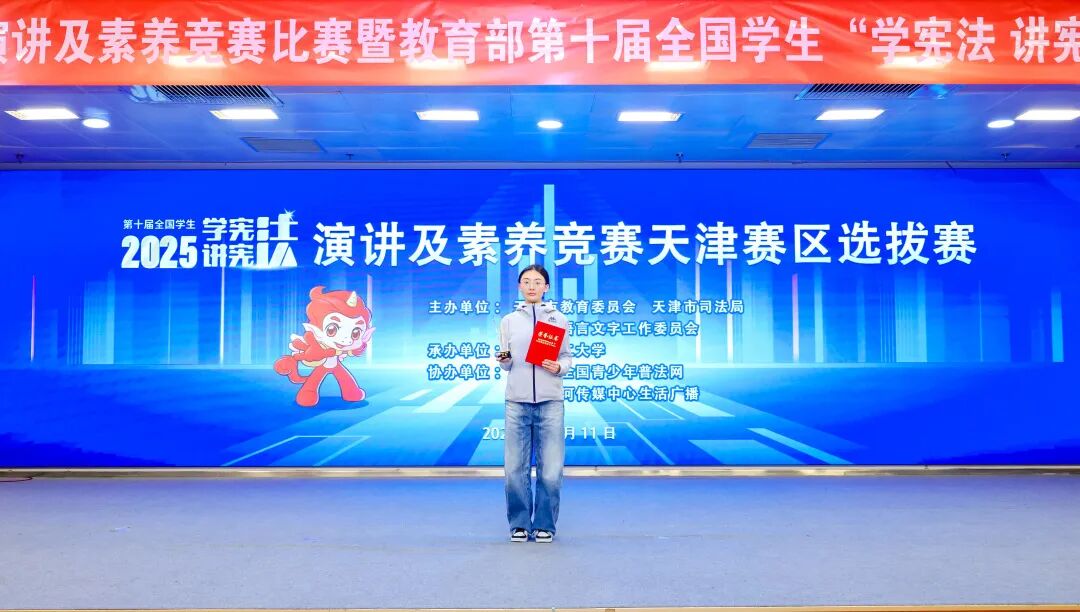 近日,由天津市教育委员会、天津市语言文字工作委员会主办,天津理工大学承办的天津市第九届学生“学宪法 讲宪法”比赛暨教育部第十届全国学生“学宪法 讲宪法”活动天津赛区选拔赛闭幕。天外国际关系学院2023级法学专业学生毕璇荣获素养竞赛高校组季军,王岩华老师获优秀指导教师。