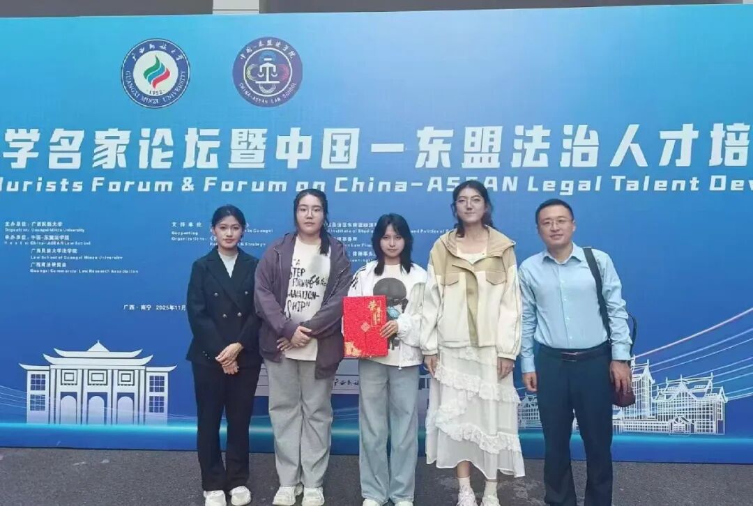 2025年11月8日,由广西法学会、自治区司法厅等单位指导,广西民族大学主办的全国首届涉外法律服务项目大赛在南宁落下帷幕。全国120余支高校队伍同台竞逐,我院莫可(项目负责人)、王语萱、王梦露、张雅瑄四位同学组成的团队凭借《企航商标通——中国东盟中小企业跨境商标法律服务项目》斩获高校组优秀奖,让“天外”的名字在南国的法治赛场熠熠生辉。